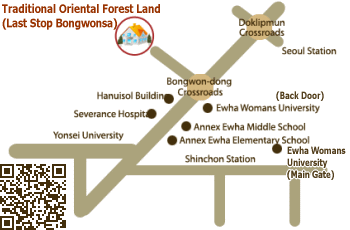 연간 약 20만명의 이용자가 방문하는 「숲속 한방 랜드」에서는, 황토의 솥가마에 상수리 나무를 태워 그 열을 이용하는 숯가마(스미가마) 사우나로서 1000년의 역사가 있는 한국의 전통 사우나를 체험할 수 있다.그 외, 각종 사우나·욕탕, 맛사지, 때밀기, 오락 연예, 치마 저고리의 기념 사진, 숯불 불고기(식사), 가라오케, 트레이닝 룸등 다양한 시설을 갗추고 있으며 비지니스맨을 위한 PC 코너도 준비되어 있어서 가족이나 직장동료들과 느긋하게 휴식을 취하는데 최고이며 연중무휴로 24 시간 영업을 하고 있어 연인이나 가족, 또 많은 동료와 함께 즐길 수 있는 전통 사우나인 「숲속 한방 랜드」입니다.
